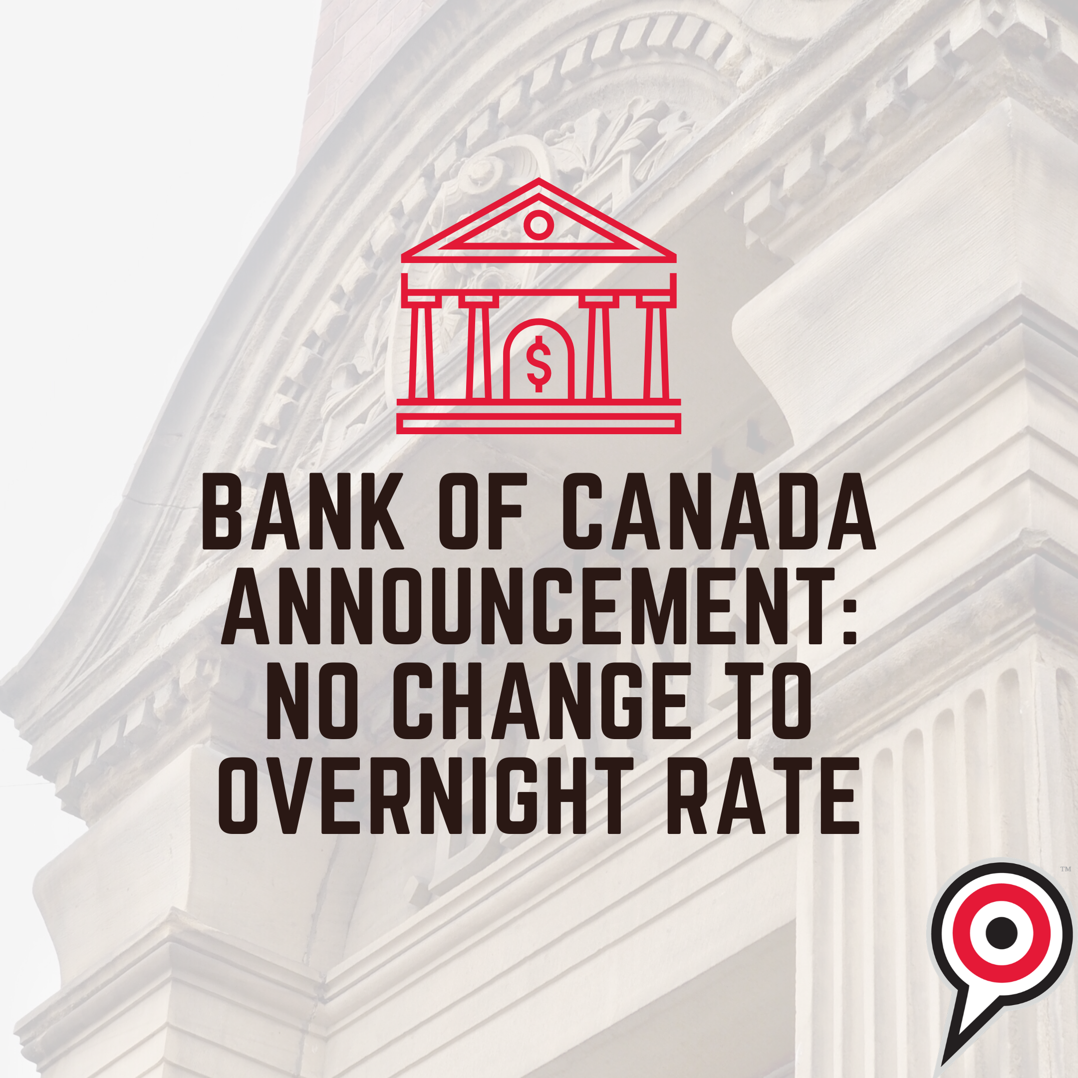 The Bank of Canada announced that its key interest rate target is on hold at 0.25 percent.