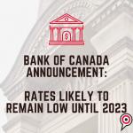 Bank of Canada Hints at no Interest Rates Hikes until 2023